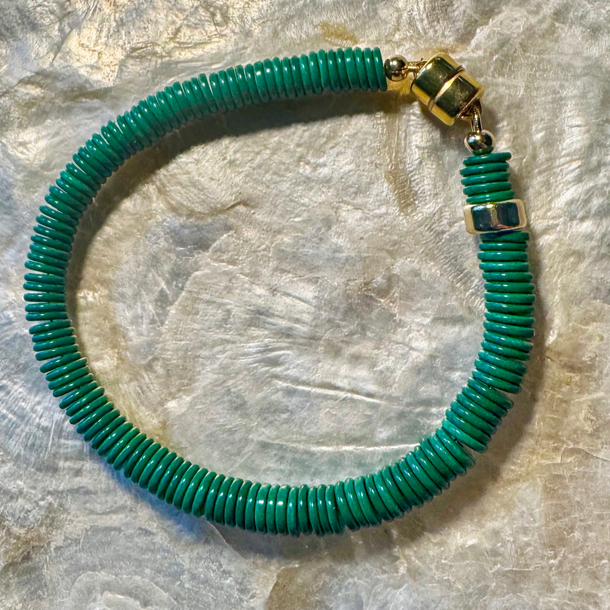 Discover the perfect balance of style and spirituality with our Green Snow Agate Men’s Bracelet. This striking 8.25-inch bracelet combines the natural beauty of dyed green snow agate with elegant gold-filled accents, creating a sophisticated accessory that’s perfect for everyday wear or special occasions.